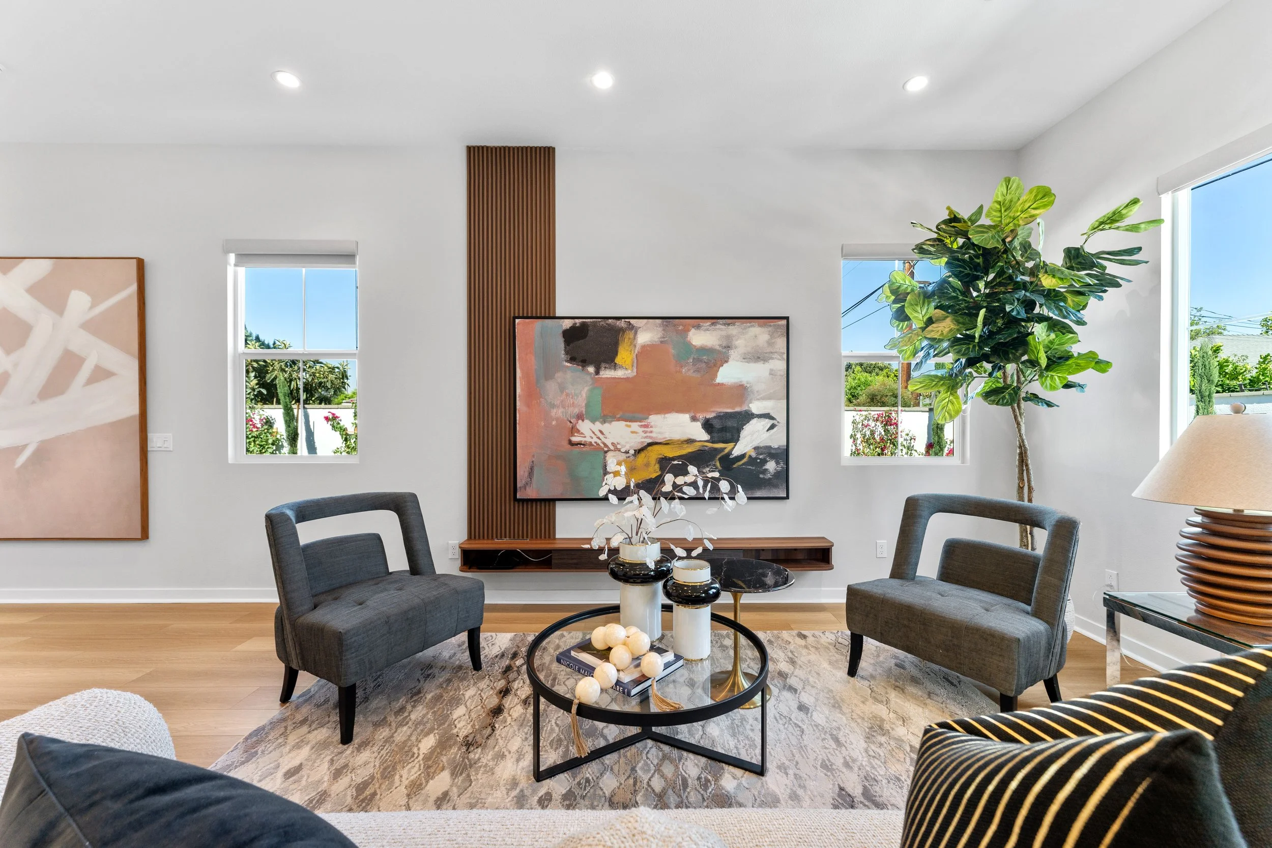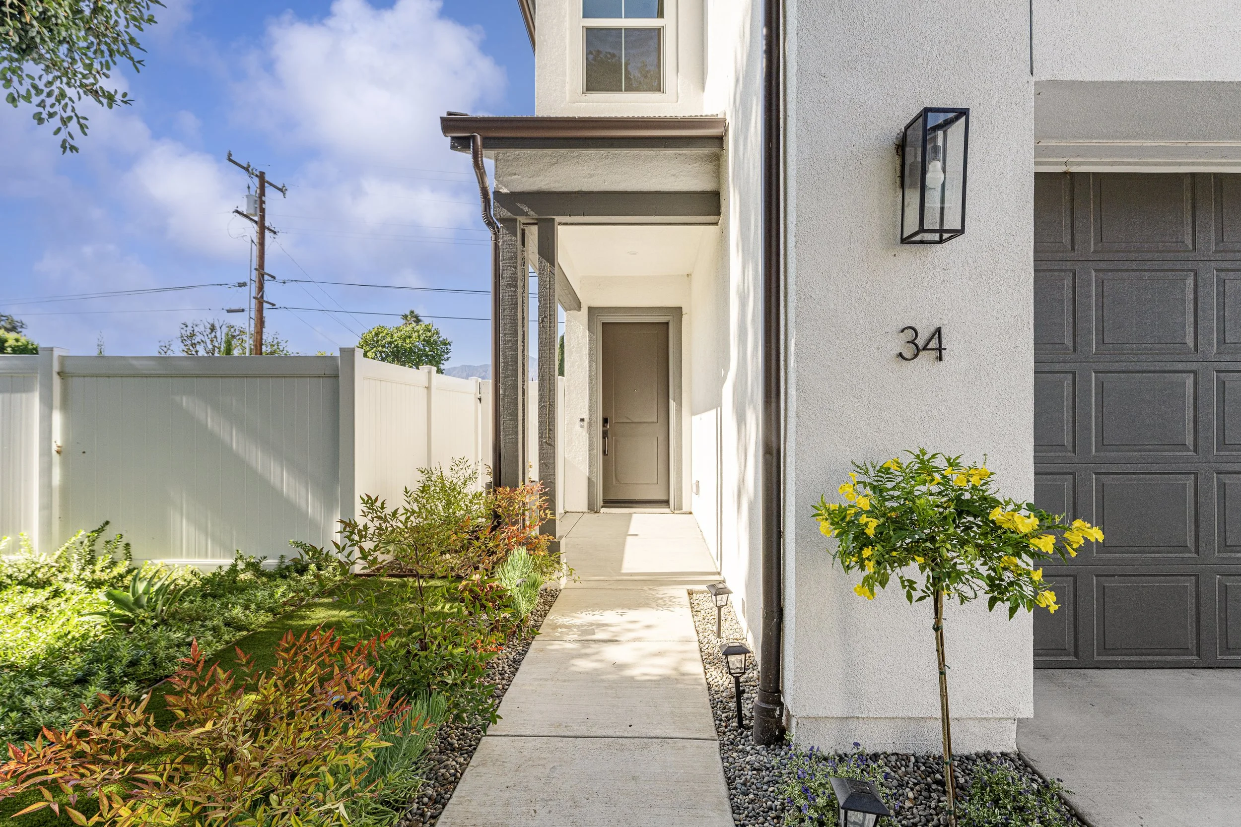 This exceptional gated end-unit modern residence sits on the largest wraparound lot in an exclusive 33-home luxury community. With an ideal blend of privacy, elegance, and smart functionality, this thoughtfully designed newer two-story home features 3 bedrooms, 2.5 bathrooms, and an intuitive layout perfect for today’s lifestyle. Step into a bright, airy interior where soaring ceilings and expansive windows flood the open-concept living space with natural light. The gourmet kitchen is a chef’s dream, equipped with a smart Samsung refrigerator, GE Café Pro 6-burner gas rangetop, smart convection oven and microwave, quartz countertops, an oversized center island, reverse osmosis water filter and faucet, and abundant custom cabinetry. The dining area flows seamlessly into a beautifully landscaped backyard retreat with a lemon, orange and mini avocado tree—ideal for entertaining or quiet relaxation. A stylish powder room completes the main level. Upstairs you’ll find a built-in desk at the landing, perfect for homework or a home office. The spacious gathering area with a built-in bench offers flexible space for a media room, gym, or play area. The luxurious primary suite features a large walk-in closet and a spa-inspired bathroom with dual vanities, a soaking tub, and a walk-in shower. Two additional bedrooms, a shared full bathroom, and a conveniently located upstairs laundry room complete the second floor. Additional features and upgrades include an attached two-car garage with direct access, whole-house water softener, Tesla charger, smart keyless entry, smart dimmable touchscreen light switches, Veneta custom shades, Honeywell dual zoned smart thermostats, tankless water heater, and fully paid-off SunPower solar panels. This rare offering combines high-end, single family-like living with the Arcadia Unified School District – a National Blue Ribbon and California Distinguished School and a strong sense of community—an incredible opportunity to own in one of Arcadia’s most sought-after gated enclaves.