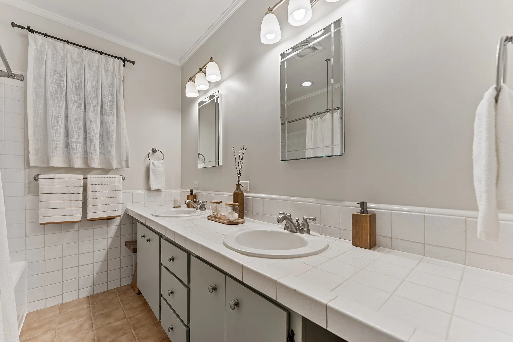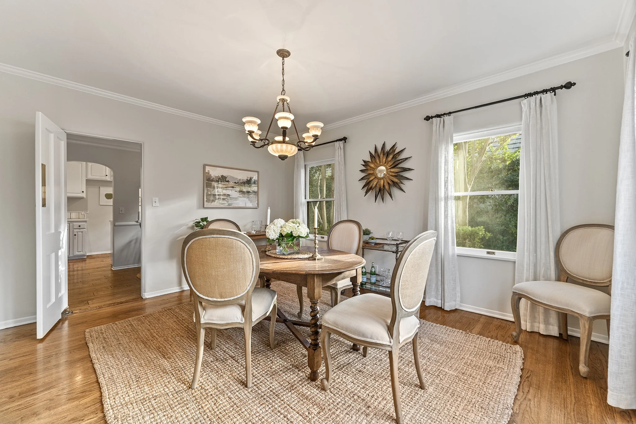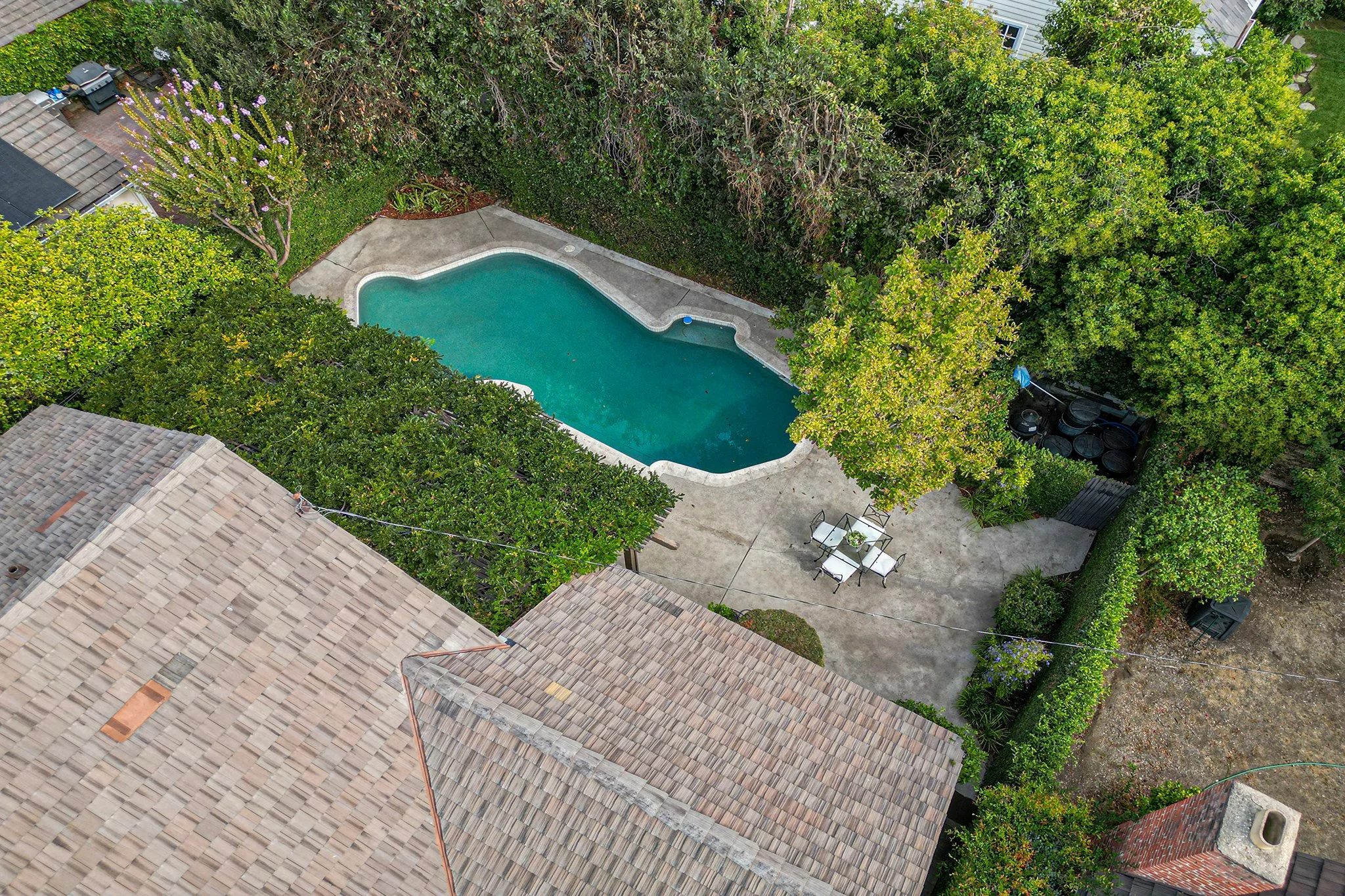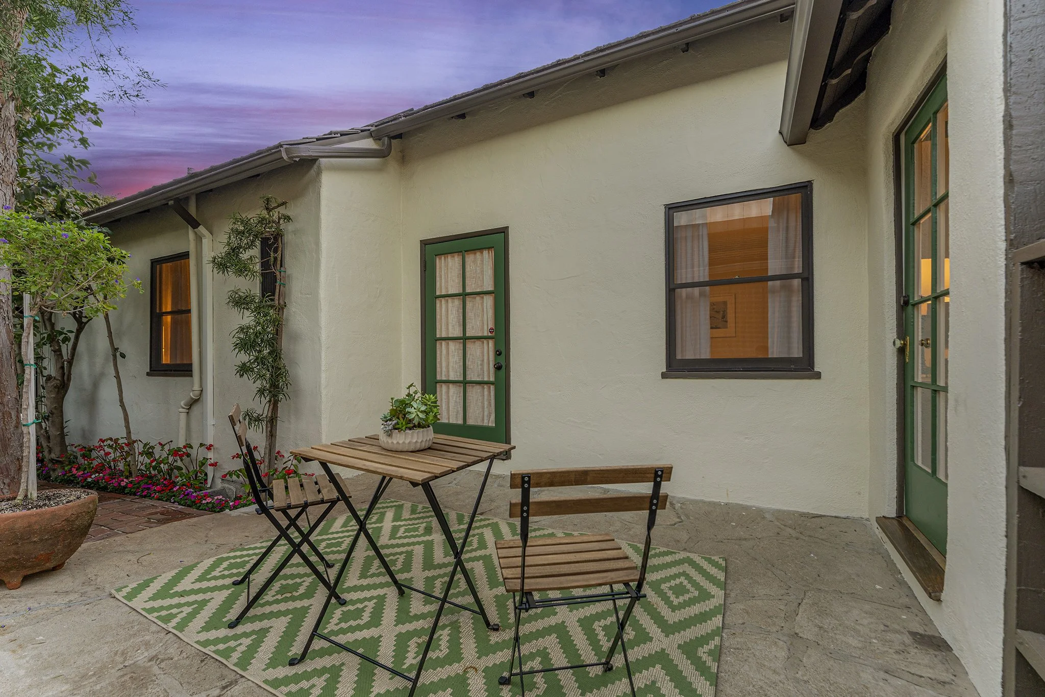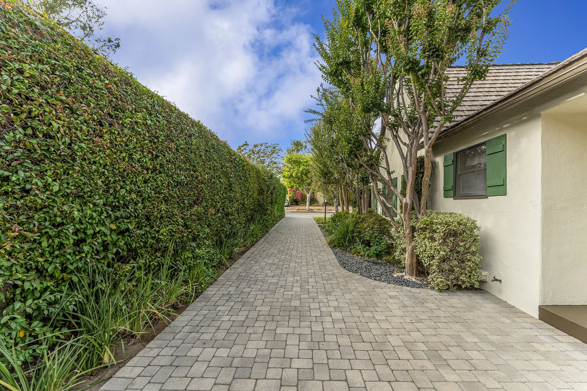 Nestled on a quiet street in San Marino’s highly desirable Mission District, this English Cottage evokes the timeless charm of the countryside. With its steeply pitched roof, aged brick façade, and diamond-pane windows, the home radiates warmth and storybook appeal. A paver stone walkway meanders through lush flower beds to the inviting porch featuring arched wood beams that accent a vintage paneled door create a welcoming prelude to the home. Beyond the entry, built-in shelves and a petite view window lead into the dramatic living room, revealing soaring vaulted ceilings with exposed beams, gleaming hardwood floors, anchored by a striking stone fireplace with raised hearth and rustic wood mantel. A French door opens to the side patio, blending indoor and outdoor living. The formal dining room, illuminated by an opaque glass chandelier and abundant natural light, opens to the sunny breakfast room featuring a wrought-iron chandelier adorned with hand-painted ceramic accents, walls of cabinetry, a convenient prep sink, and a tiled serving counter that connects seamlessly to the kitchen—perfect for casual meals or morning coffee. The functional kitchen is appointed with tiled countertop, matching backsplash, and custom cabinetry. A versatile mudroom with laundry and an adjoining three-quarter bath adds everyday convenience, while a side door opens to the paver driveway that leads to the detached garage. A central hallway leads to the home’s private quarters, where one bedroom features a walk-in closet and French doors to the side patio. At the end of the hall, a flexible primary suite can be closed off for added privacy and offers double closets, tranquil views of the backyard, and a primary bath with dual sinks. A third bedroom doubles as an office or den, enhanced by built-in bookcases and French doors that open to a wisteria-draped pergola—an enchanting setting for dining al fresco. The private backyard unfolds as an oasis of relaxation and leisure, with a sparkling pool surrounded by lush hedges and mature trees, offering the perfect retreat for lounging by the water or gathering with friends on warm evenings. Combining classic English charm with the best of California living, this quintessential cottage is truly your home sweet home!